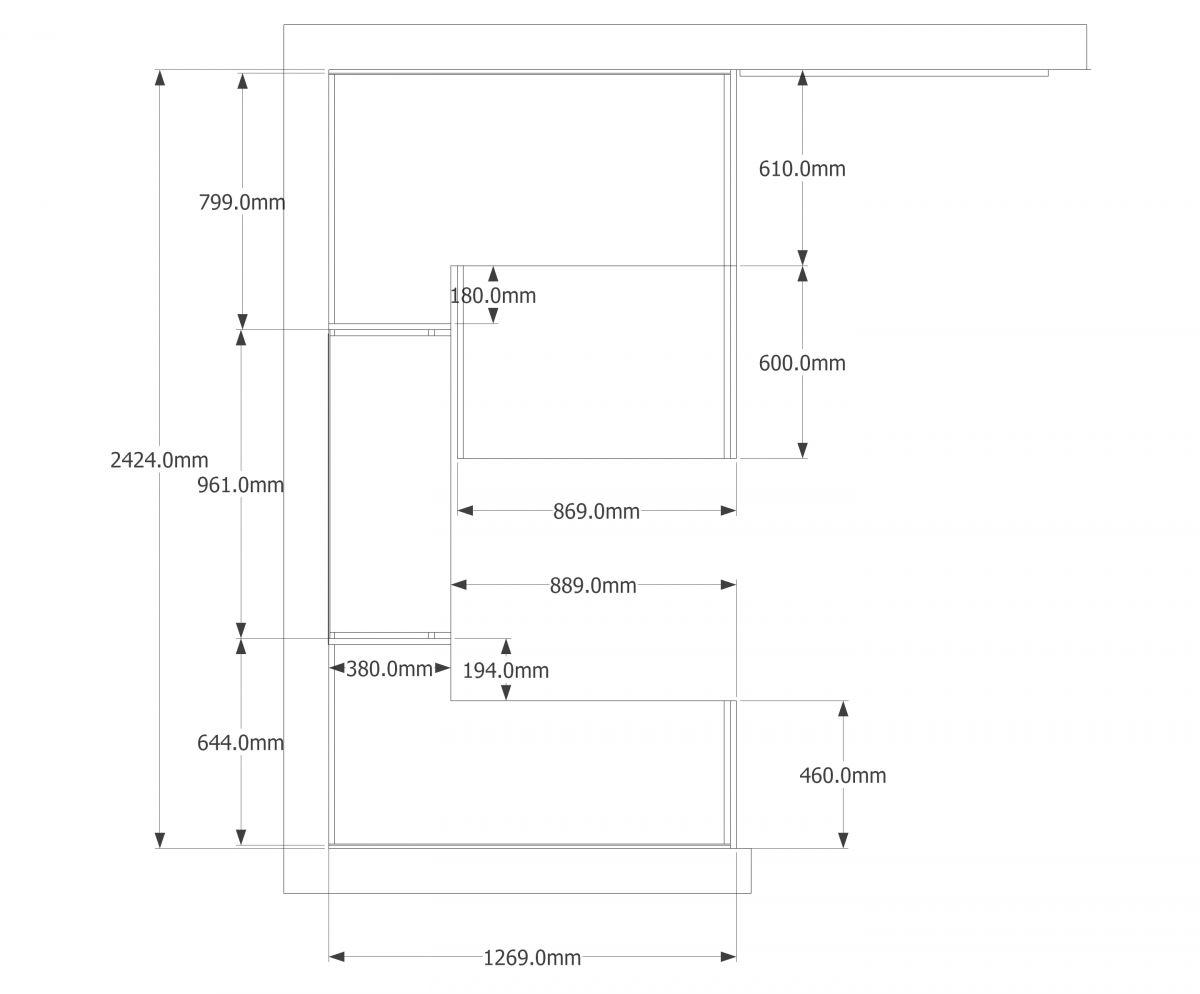 Dans une construction récente des clients souhaitaient rentabiliser un espace à l'entrée pour y installer une penderie. Ils avaient imaginé adapter le principe des armoires d'archive, soit un bloc fixe central monté sur roulette permettant, en fonction de sa position, d'accéder à l'un ou l'autre côté de la penderie.