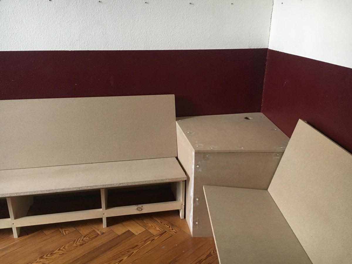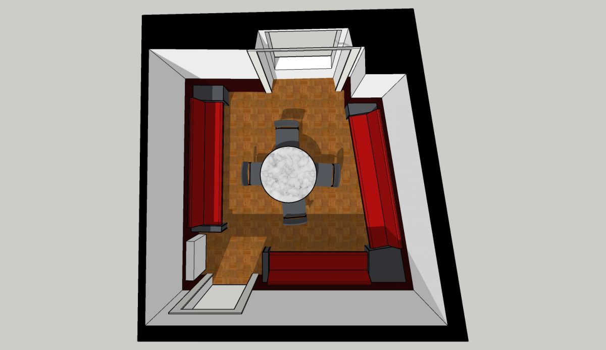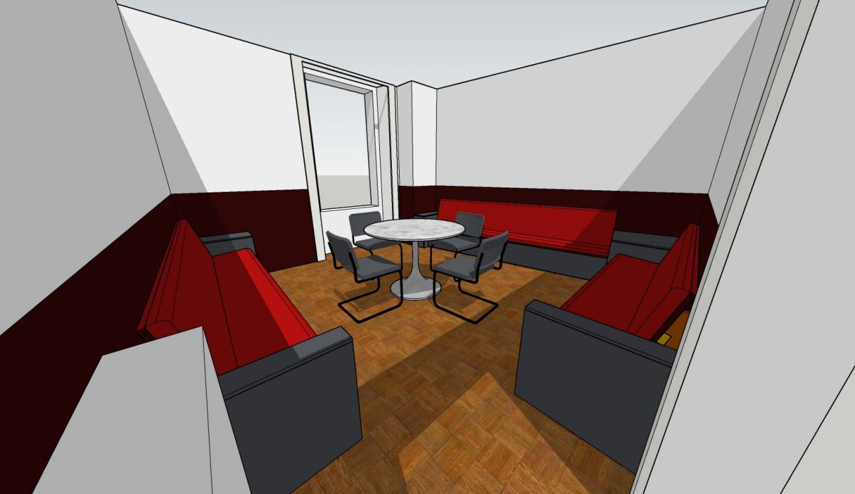 Ainsi, je me suis dit que l'on pourrait tirer parti des angles étranges de la pièce pour créer ces fameuses surfaces utiles. Pour optimiser la construction, les banquettes en elle-même sont conçues sur la base d'un profil qui sera découpé à la CNC et simplement assemblées ensuite à l'aide de lambourdes standards.