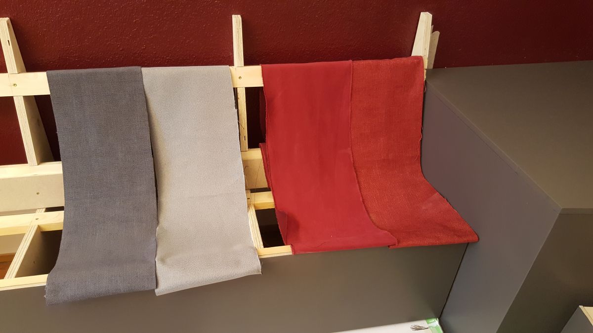 Après la rénovation du faux plafond de la salle de conférence, les anciens sièges de cinéma qui nous servaient de banquettes ne ressemblaient vraiment plus à rien! Les dimensions de la salle ne se prêtant pas bien à l'achat de banquettes standards, j'ai proposé au collectif de réaliser du sur-mesure.