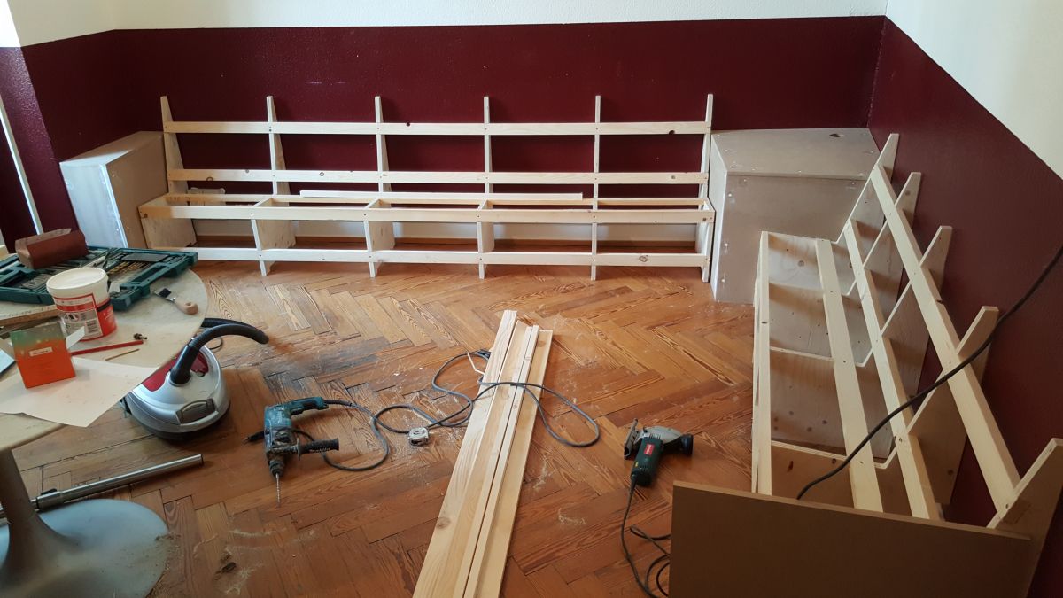 Le reste, c'est juste du travail, pas mal de poussière, du mastic pour boucher les trous de vis, quelques couches de peinture et de la tapisserie!